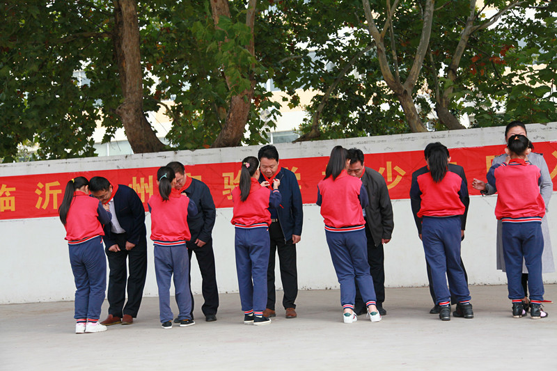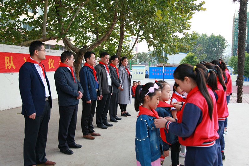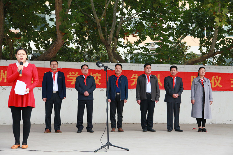 入隊(duì)儀式上,王自祥校長為同學(xué)們授大隊(duì)旗,輔導(dǎo)員李元明老師對新隊(duì)員入隊(duì)表示熱烈祝賀?;顒?dòng)還聘請了一年級的班主任為一年級各中隊(duì)的中隊(duì)輔導(dǎo)員,校領(lǐng)導(dǎo)親自給輔導(dǎo)員們頒發(fā)了聘書。
