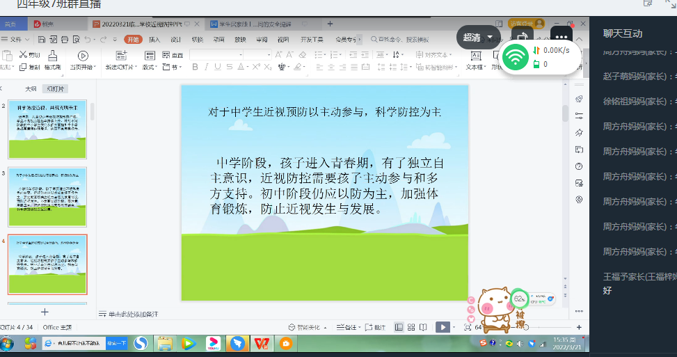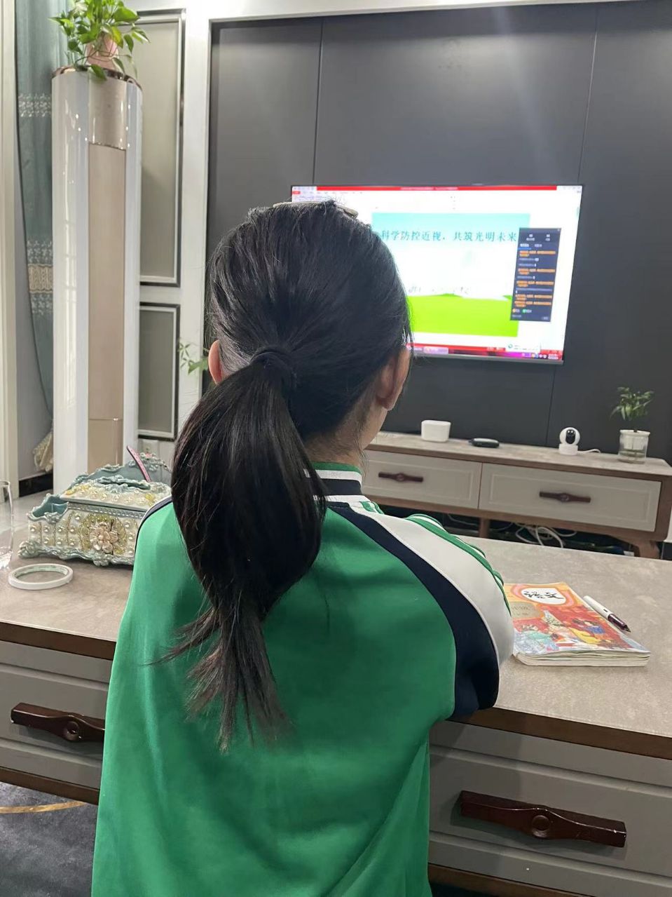 線上學(xué)習(xí),學(xué)生們的視力如何保護(hù),這也是讓家長比較焦慮的事情。為此,各中隊(duì)輔導(dǎo)員開展了科學(xué)預(yù)防近視,共筑光明未來的主題隊(duì)會(huì)。他們從電子產(chǎn)品選擇和擺放要求、讀寫姿勢(shì)、勞逸結(jié)合、采光與照明等方面向同學(xué)們介紹了科學(xué)預(yù)防近視的方法。同時(shí),對(duì)復(fù)學(xué)后的近視預(yù)防方法也做了詳細(xì)介紹。